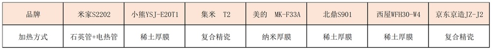 这7款产品里,小米,集米和京造不是用厚膜加热,当然,他们在价格上确实也比其他几款要低。 稀土厚膜加热是市面上第五代加热技术,能够精准控温,并且加热效率快,使用起来也更加安全稳定,但是缺点也是成本比较高。