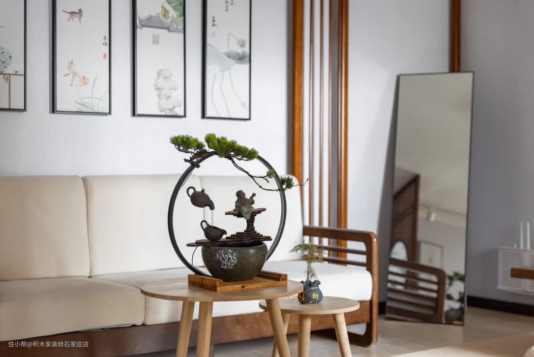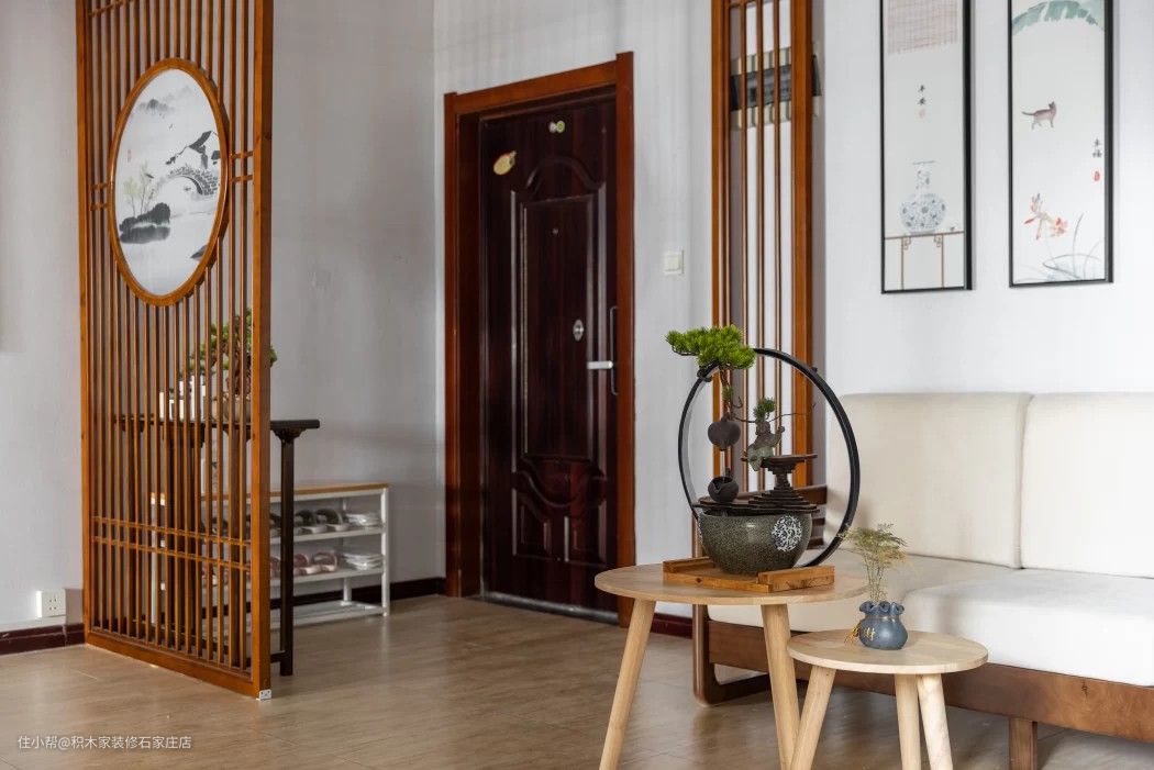除了以上元素,简约新中式风格的案例还注重细节的处理。如通过挂画、摆件、花卉等装饰品的搭配,增添了空间的生气和层次感。同时,对于窗帘、地毯等软装饰的选择也非常重要,它们可以起到点睛之笔的作用。