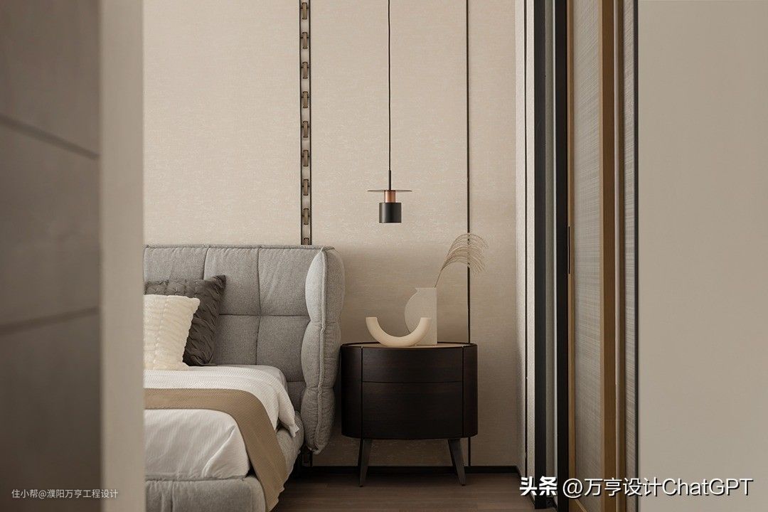 融合现代简约的法式线条与个性手工质感的深胡桃木雕刻,通过多材质的巧妙碰撞,在空间中追求美学平衡。低饱和度的配色,结合各种元素的运用,赋予空间一种韵律感,体现了舒适悠闲之情。