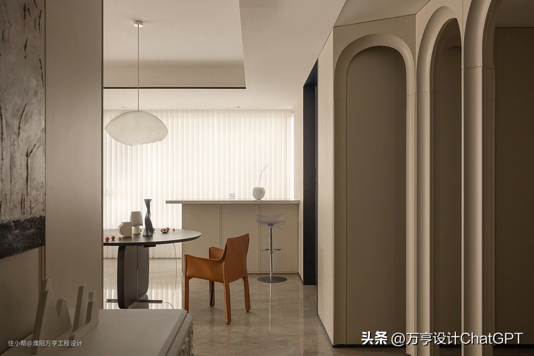 秉持现代法式设计风格,结构方面通过巧妙的生活动线与户外光线的交融,创造出流畅的整体关系。同时,通过材质和纹理的巧妙搭配,赋予空间更丰富的层次感和质感。