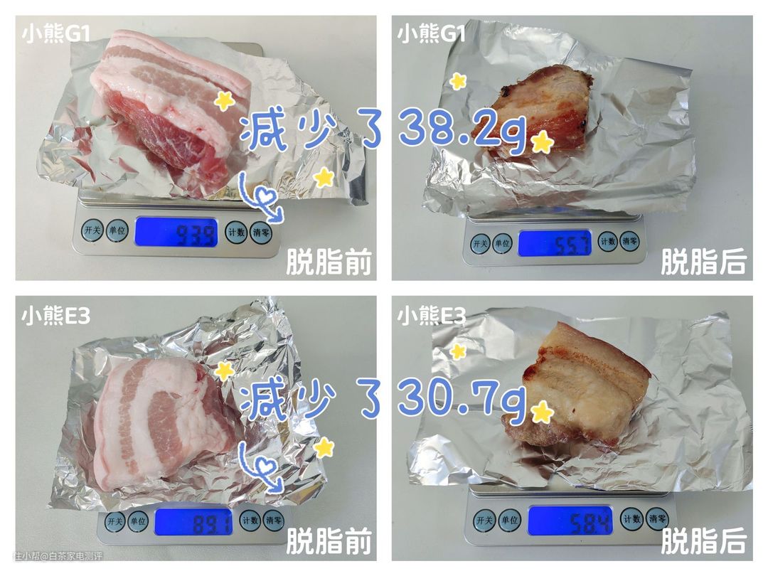 给大家看看2款小熊家空气炸锅的脱脂率如何吧!