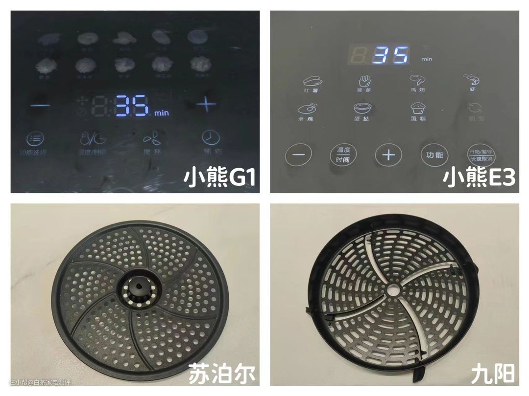 这5款空气炸锅中,小熊G1、九阳KL55-VF735、苏泊尔KD70DJ881都支持免翻面,有的朋友觉得用空气炸锅麻烦就是因为等了十分钟炸完之后还需要再拿出来翻个面再炸一次,等的时间太久,翻面也很麻烦!不够响小熊E3这样的会自己根据食物烤制程度提醒翻面,比起一般的凭感觉翻面会好一些,不过也是相对麻烦些!