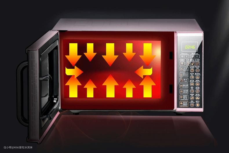微波炉的工作原理是通过发射微波,让食物吸收微波,内部不断摩擦,实现加热的效果。而烤箱的工作原理是通过发热管导热,发热管在封闭空间里加热食物。