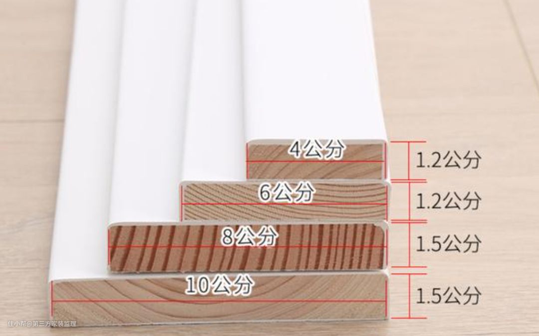 首先无论哪一种的踢脚线,他的规格一般相对固定,高度6-10cm,厚度1-1.5cm。