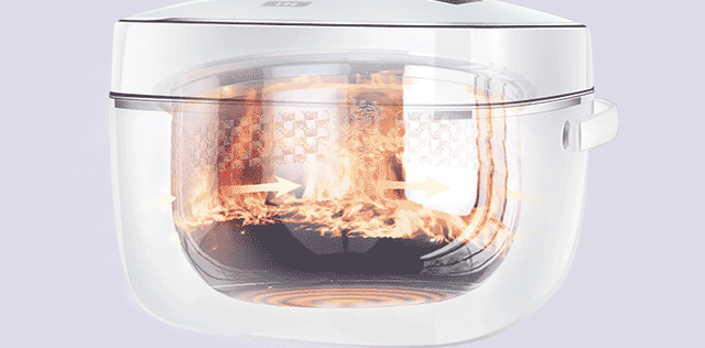 ⑤ 控压技术:利用了压力控制的传感设计来控制锅内的压力,将锅中压力限制在一定的范围内,当超过该范围则自动切断电源,当低于该范围则加速加热。