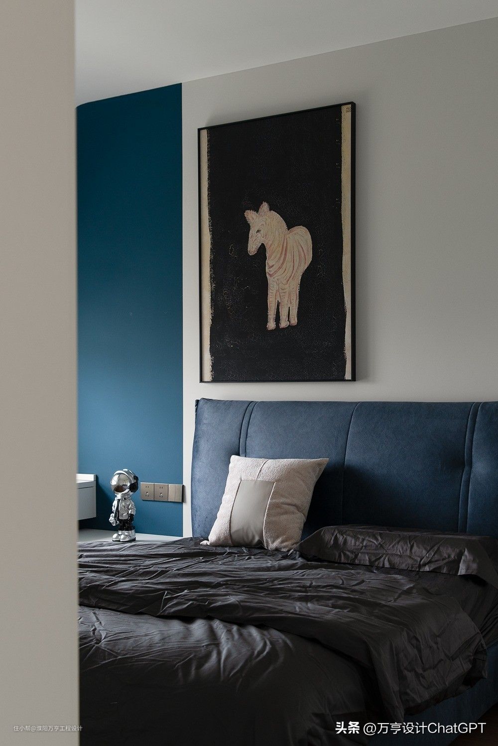 我们将小孩喜欢的颜色,通过墙面与床品进行呼应,有一种纯净的美感。