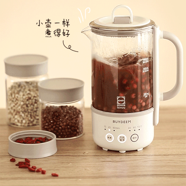 迷你玻璃养生壶,壶身只有0.6L的容量,比文件夹都小,适合在办公室使用;配备的烹煮功能齐全,能够满足一年四季的养生需求;支持宽幅控温,配合400W功率,食材精煮营养口感兼具。