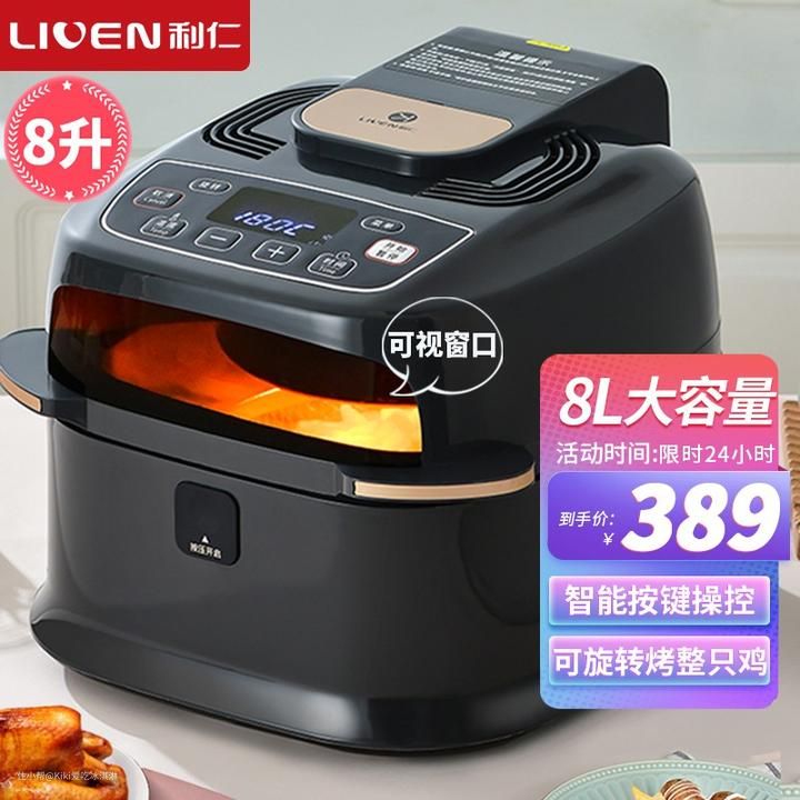 便宜,可视,顶掀,容量大是利仁的优点,这款8L适合大家庭使用,相较于同价位的空气炸锅来说它拥有旋转功能,方便烤较大的食物,一个10L且带有双发热管的空气炸锅,你只需再花260块钱就可以轻松拥有,性比价超值。