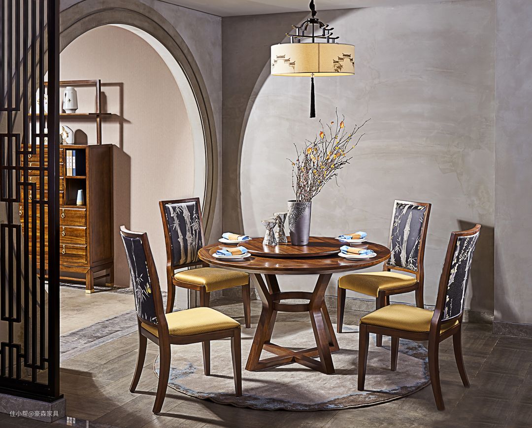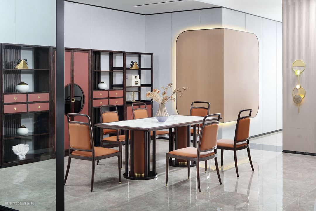 基于小户型的特点和惠州豪森家具的实力,小编为大家推荐以下两款新中式餐桌款式: