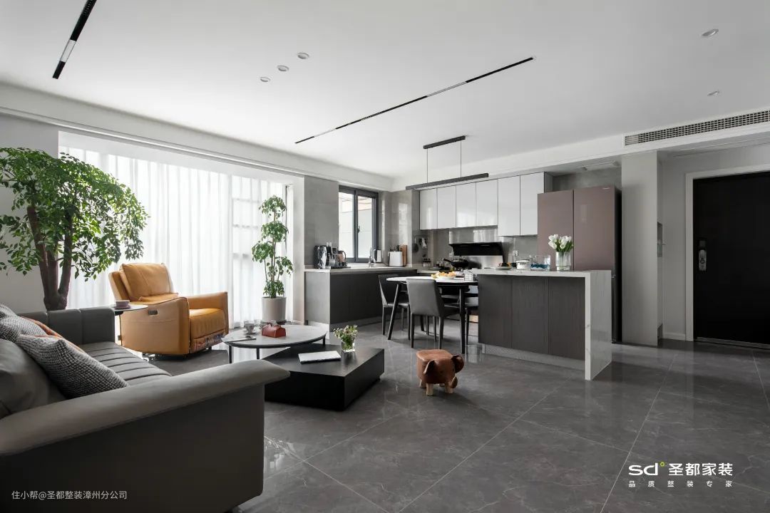 想要拥有开放式厨房,又实在担心油烟问题,那就不妨考虑一下半开放式厨房。平时作为一个开放式厨房进行空间展示;下厨时,就可以将厨房的门/窗关起来。