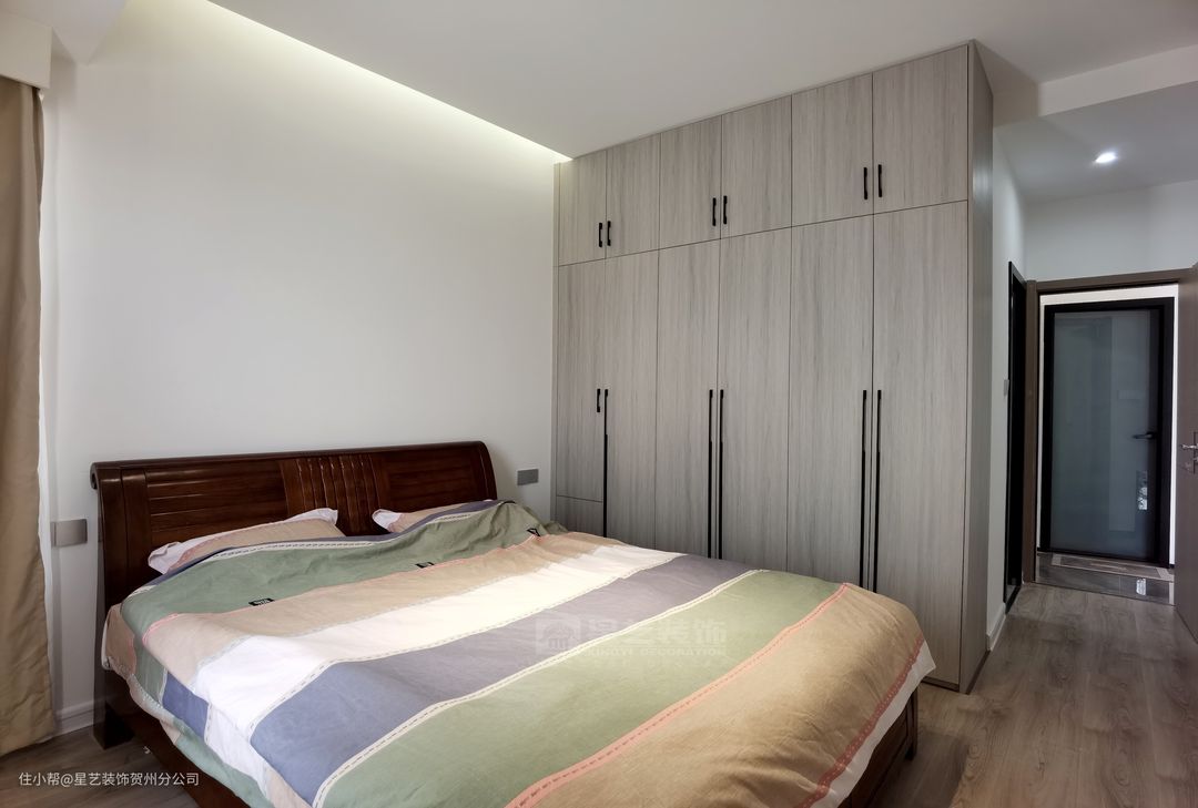 主卧也采用了无主灯设计,靠灯光来营造的氛围的带给居住者是特别柔和舒适的