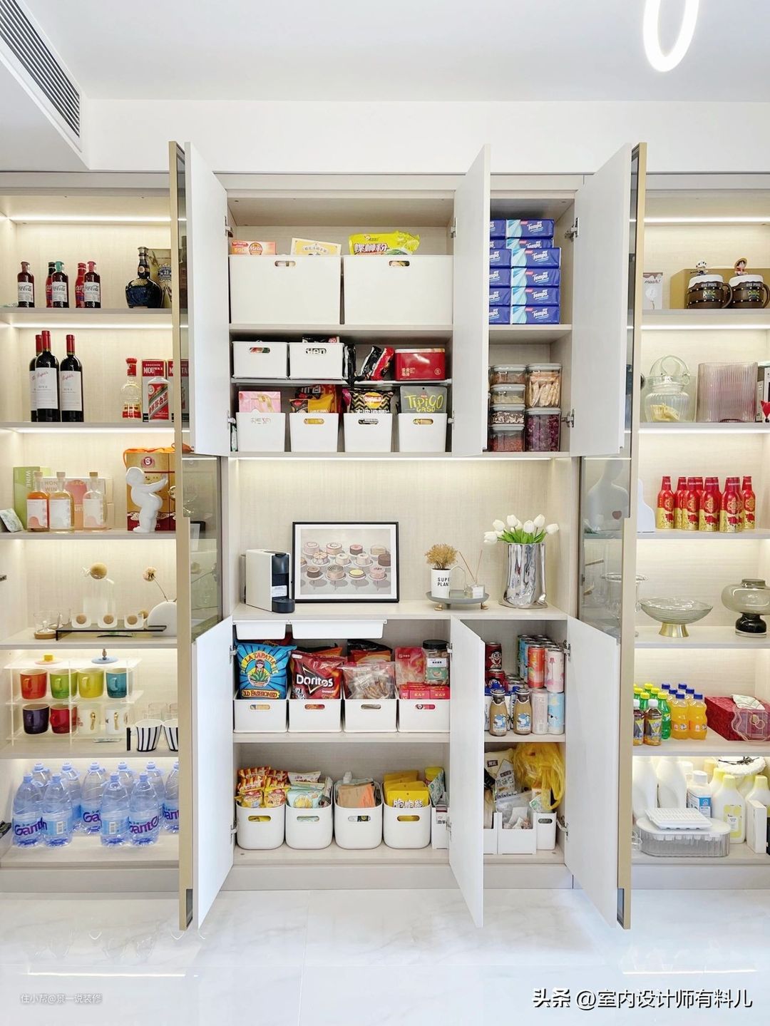 网友@ccccccc菜菜的收纳能力就很绝,柜子里都是整整齐齐,满满当当的,强迫症也表示这样的收纳看起来太舒服了。