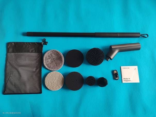 厂家为小猴电动清洁刷的配件非常丰富,在标配充电线与说明书的基础上,还附带六个不同功能的刷头,还提供了便于携带的收纳袋。并且厂家更额外的配备了一组延长杆。