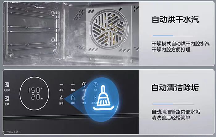 清洁功能:高温蒸汽腔体清洁+自动烘干水汽+管路除垢