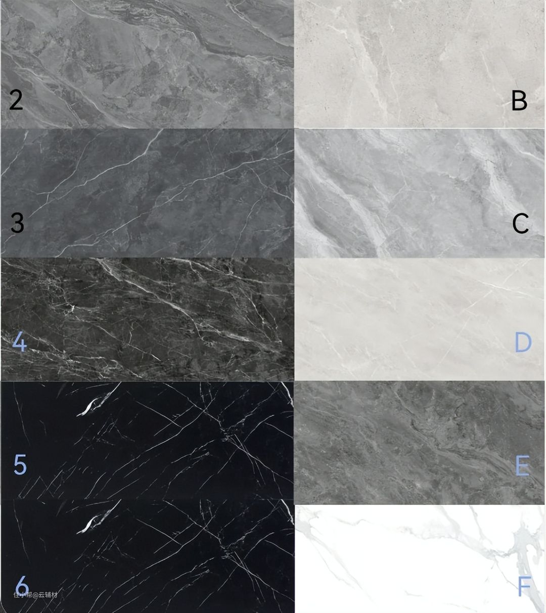 没有彩色条纹纹理,只有彩色点状纹理或纯色纹理,比大理石比:耐磨质地坚硬,适合实用主义者;质地细腻、花色丰富,适合颜值主义者。