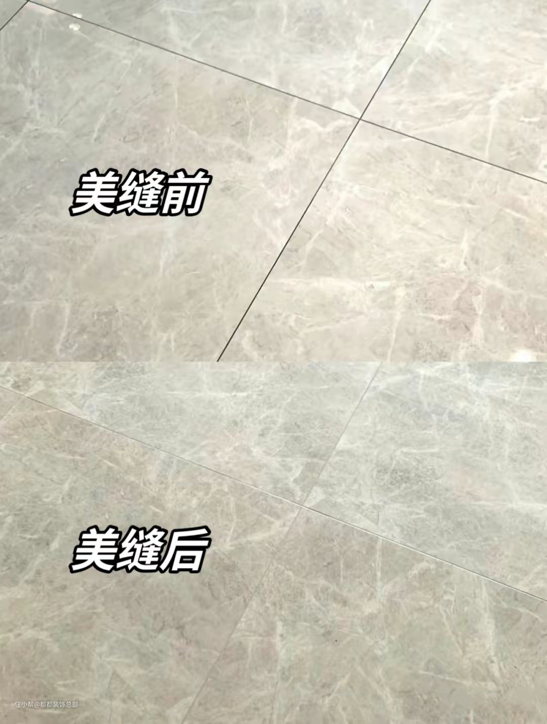 周师傅:美缝并不只是为了美化瓷砖间隙,更重要的是起保护作用,一是避免瓷砖裂开,二是不允许水汽、杂物等进入瓷砖缝中,能够有效地避免瓷砖发黑发黄,有利于清洁卫生的同时降低细菌霉菌的繁殖。