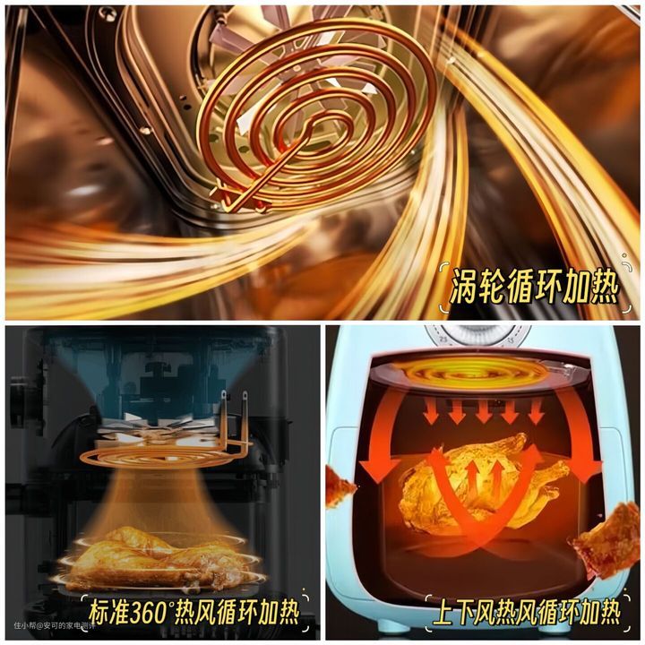 追求高效烹饪的朋友建议优先考虑涡轮360°空气循环加热空气炸锅。