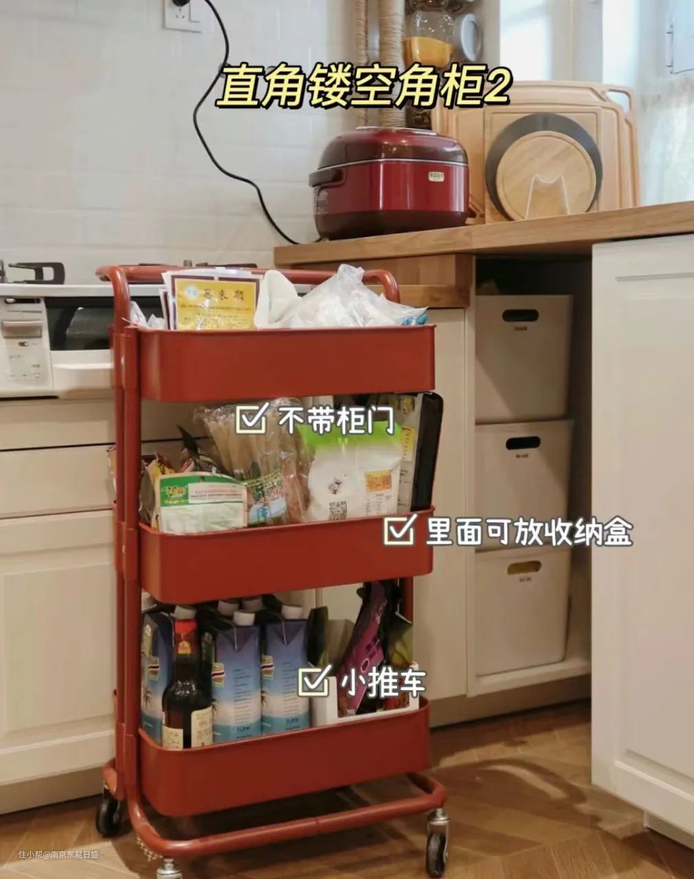 厨房空间一般都比较小,但里面要用的东西又很多,抛开横排布局的厨房外,橱柜转角位置是比较让人头疼的问题。如果我们能好好利用好这块区域,榨干每一寸空间,就能大大地提高空间的利用率。