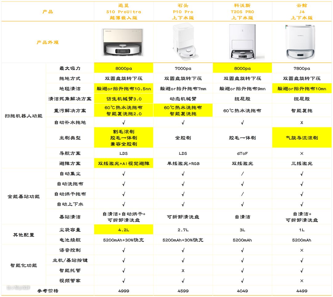 从参数表现来看,追觅S10Pro Ultra超薄版在同等价位产品中各方面表现都很优秀。