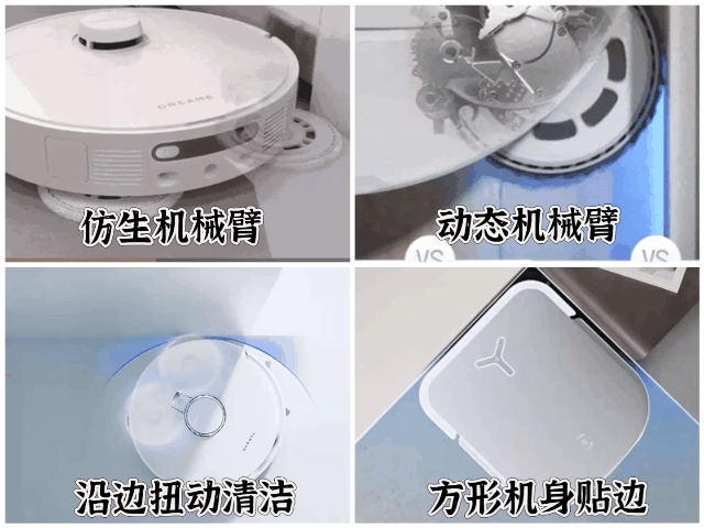 以上方式其实都能有效打扫边角区域。这里双辞更建议大家选择仿生机械臂3.0技术,智能伸缩+动态甩尾,比其他两种处理方法覆盖率更高,对缝隙的清洁更彻底。