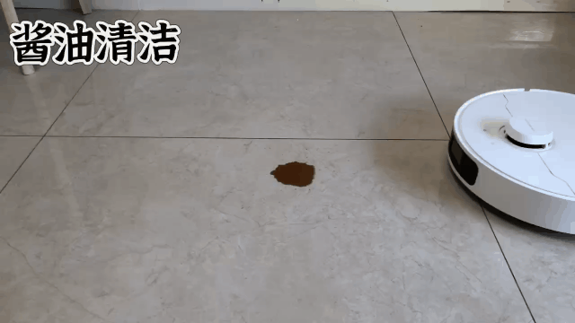 下面来看看追觅S10Pro Ultra超薄版清洁顽固湿垃圾的效果。我在地面泼洒了一些酱油,下面来看看清洁过程。