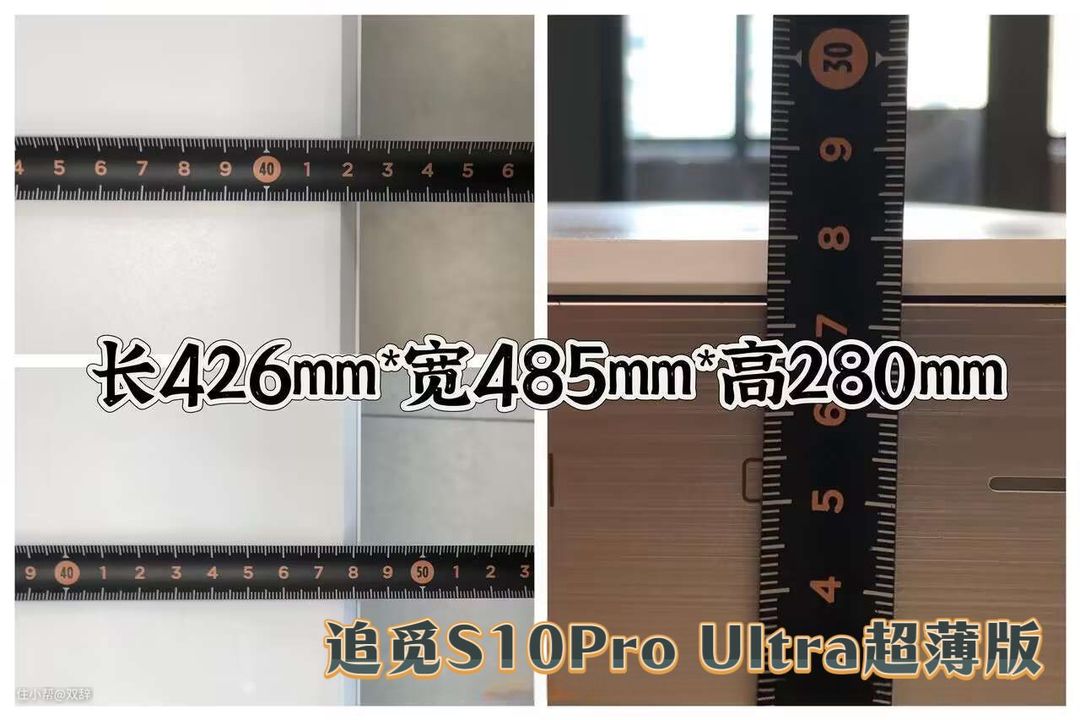 S10Pro Ultra超薄版比一般的扫拖一体机产品更薄、更小、更节省室内空间。这里我给大家实际测量了一下它的基站外观尺寸,并对比其他普通扫拖一体机的基站尺寸,大家可以看看。