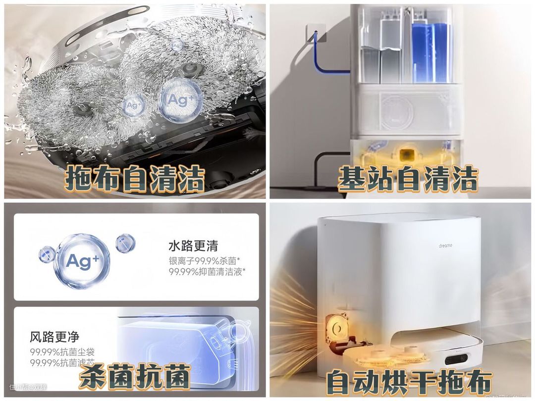 这几项功能中,最需要大家关注的就是拖布自清洁和自动烘干功能,这两项的清洁效果直接决定了基站和拖布是否会滋生细菌,每一次使用是否会有二次污染。