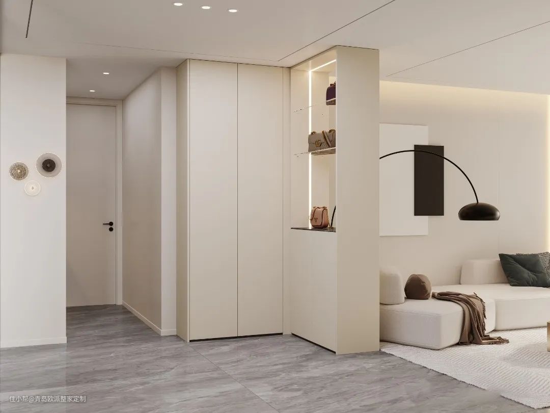 由于单人肩宽在40cm左右,入户过道起码要宽60cm。要想满足双人并排通过的条件,入户过道距离至少120cm才能不显拥挤。