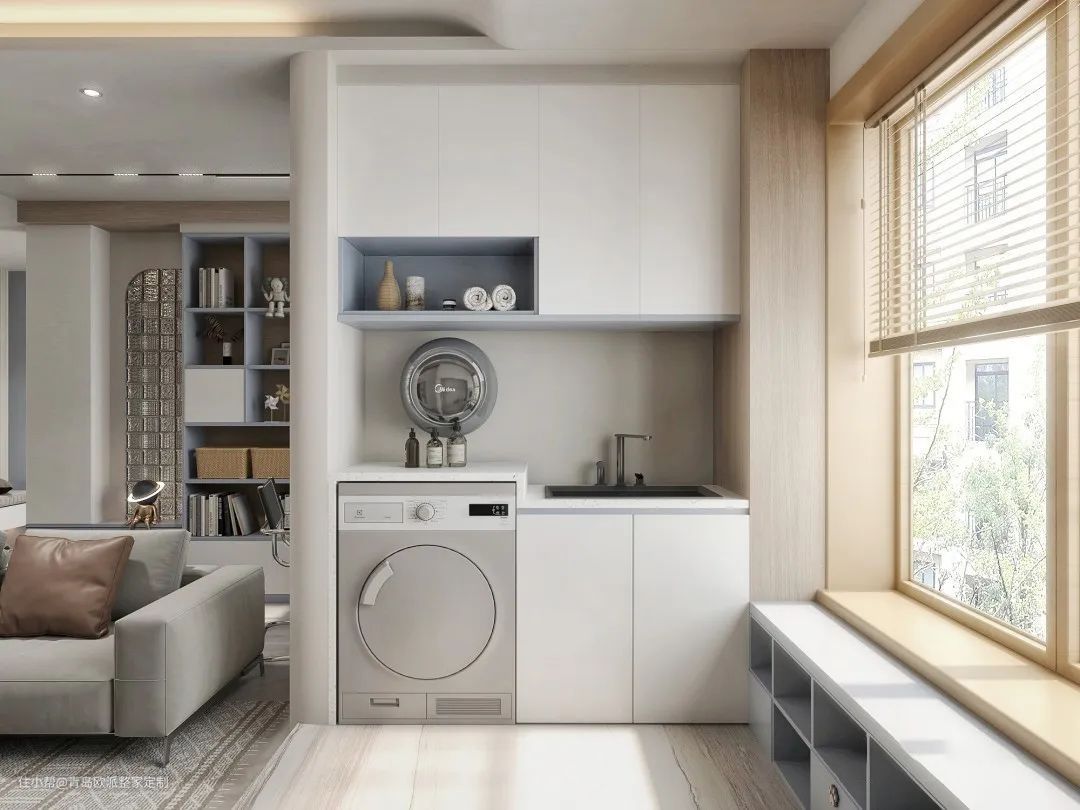 洗衣机区:高度一般为95cm(个),如果还要放置烘干机,尺寸为190-200cm