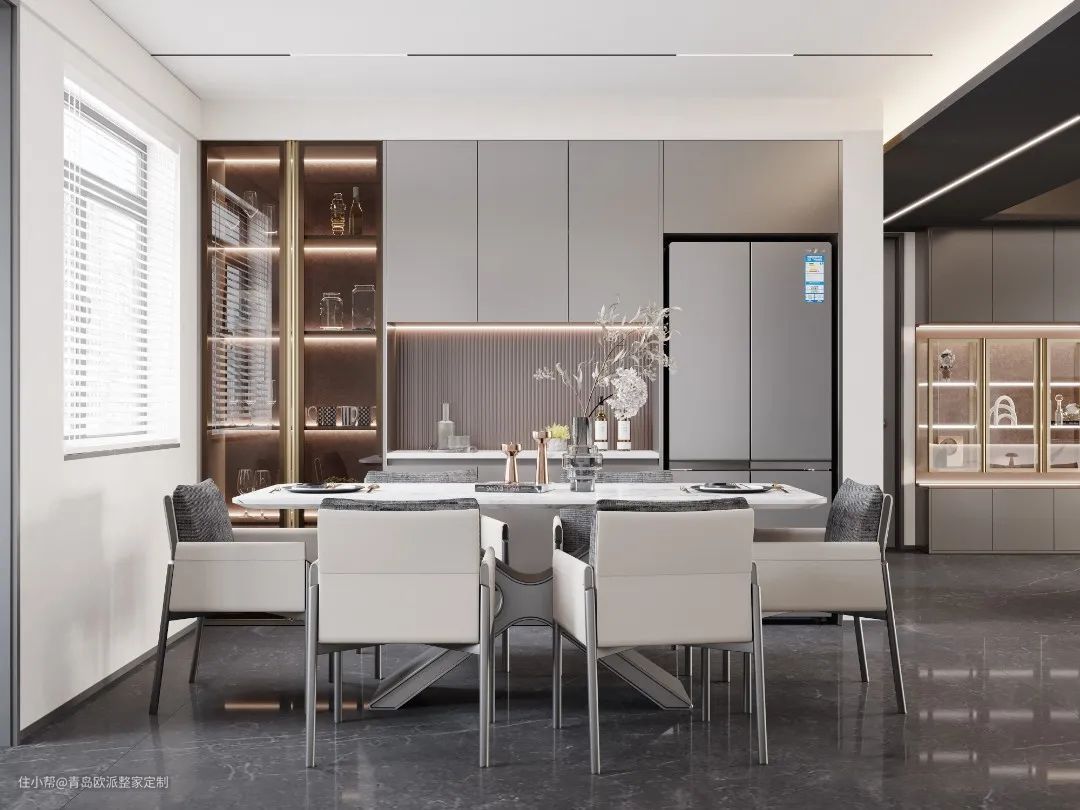 合适的吊灯照明可营造一个温馨舒适的就餐环境,吊灯到餐桌的理想距离为80-90cm。