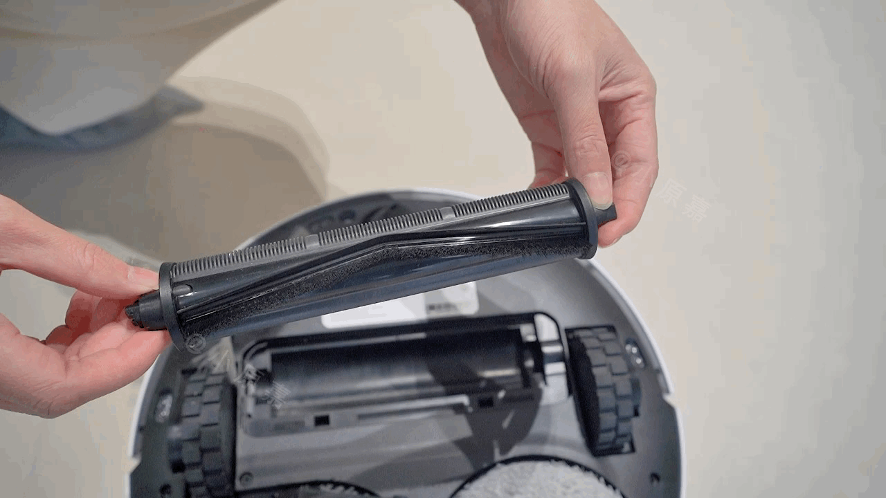 这款是主动割毛滚刷,在看不见的内部内置了能割断头发的刀片,当有毛发缠绕在滚刷时,会通过旋紧后的作用力将头发直接割断,从而进入尘盒减少手动解决。