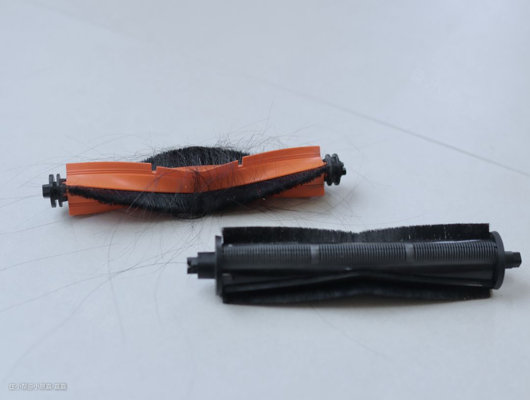 追觅S10PU超薄版标配的滚刷,分别是适合深度清理地板瓷砖缝隙的胶毛一体滚刷、以及之前没见过的主动割毛滚刷。下图是用两个滚刷清理长发后,取下滚刷后的效果。