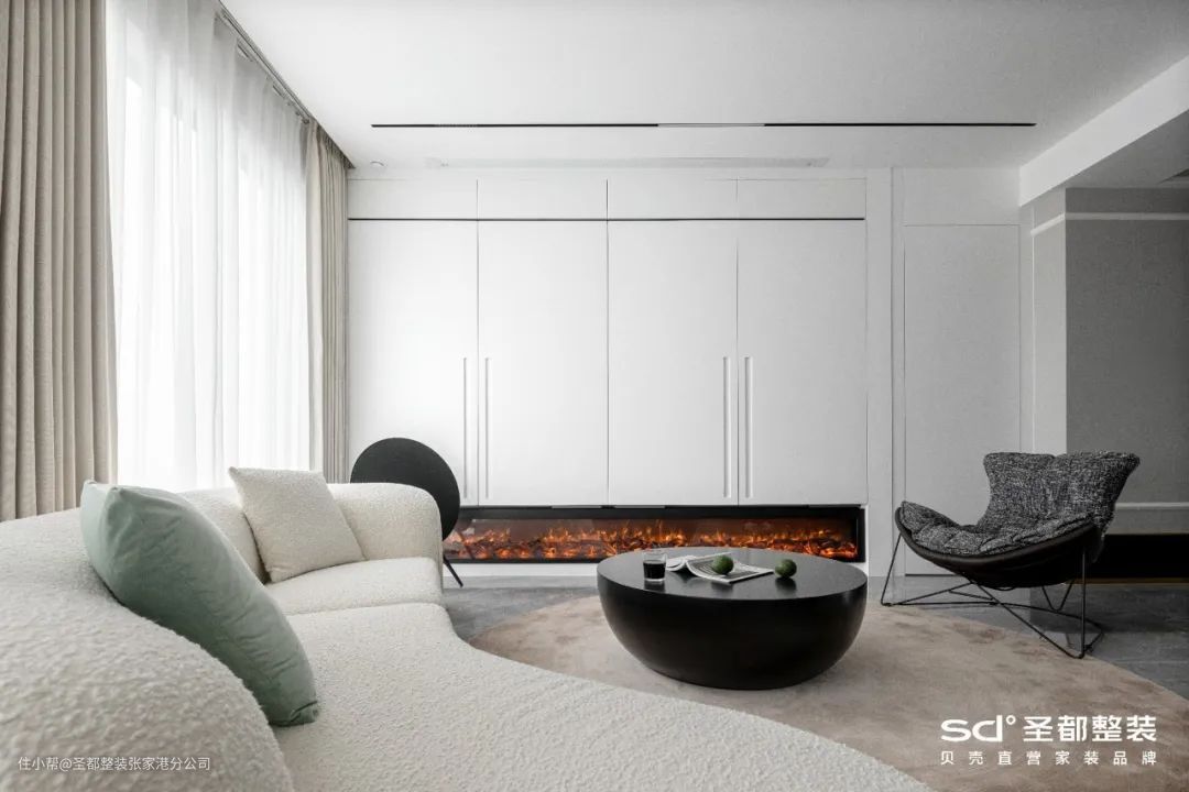 如果对客厅收纳需求不高,一个悬空电视柜搭配一张小茶几就OK了。