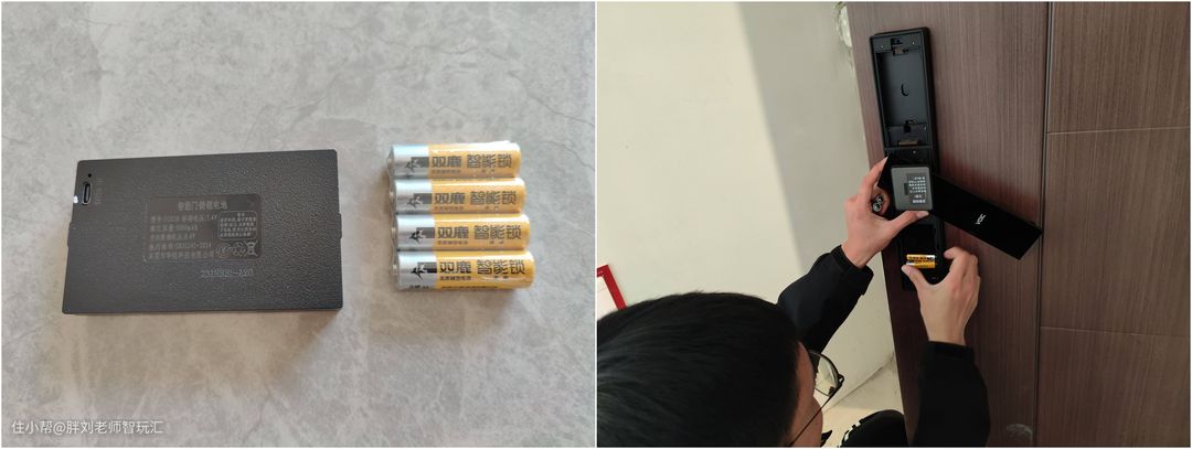 对于智能锁来说,还有一个非常重要的安全问题:电,T10plus采用了双电仓设计,优先使用5000mAh的锂电池供电,同时还有四节干电池供电,即使在无电的情况下,也可以使用充电宝临时供电!