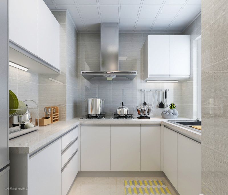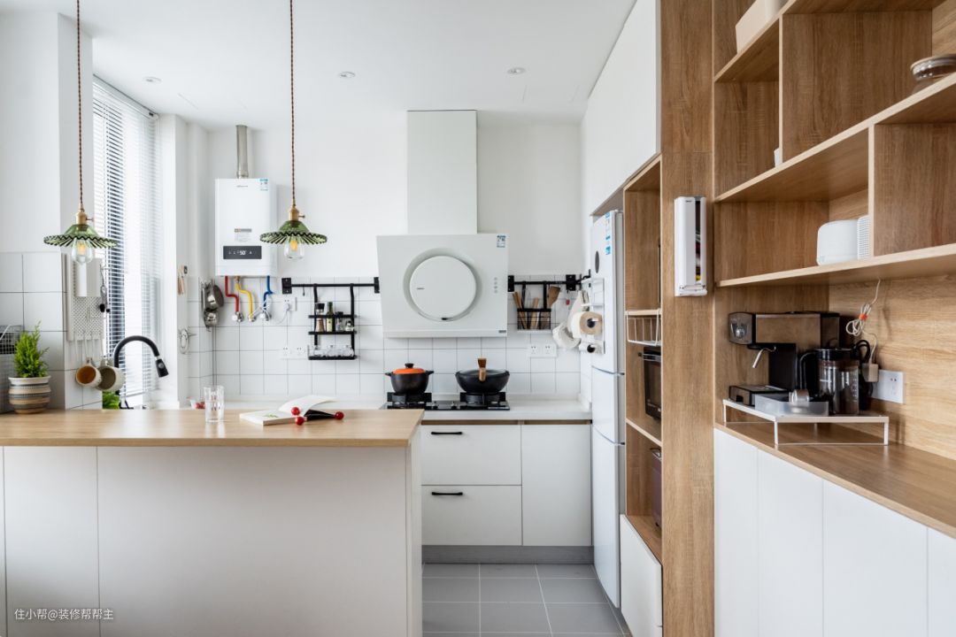 3、利用墙面安装挂钩、置物架等,方便存放厨具和调料,保持厨房整洁有序。