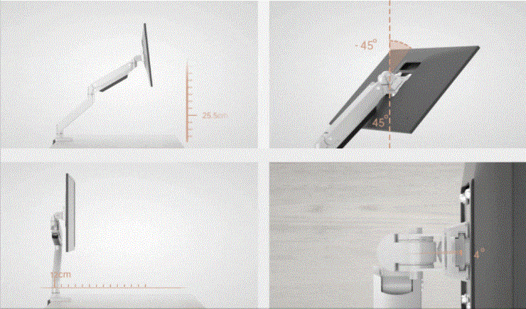 而显示器支架的好处,就是方便轻松调节显示器的高度、前后、倾仰角度等,当我在码字、打游戏、看剧的不同姿势切换下,他都能提供很好的帮助。