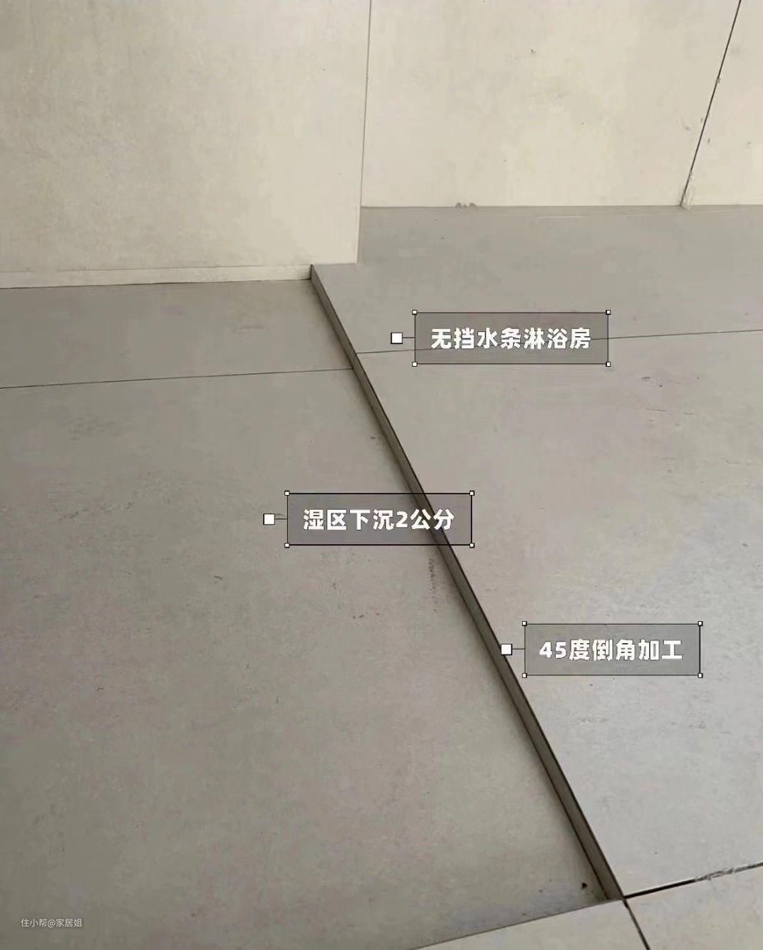 卫生间内的淋浴区不做挡水条,整体做下沉式地面,简洁好看,又能减少很多卫生死角,实用。
