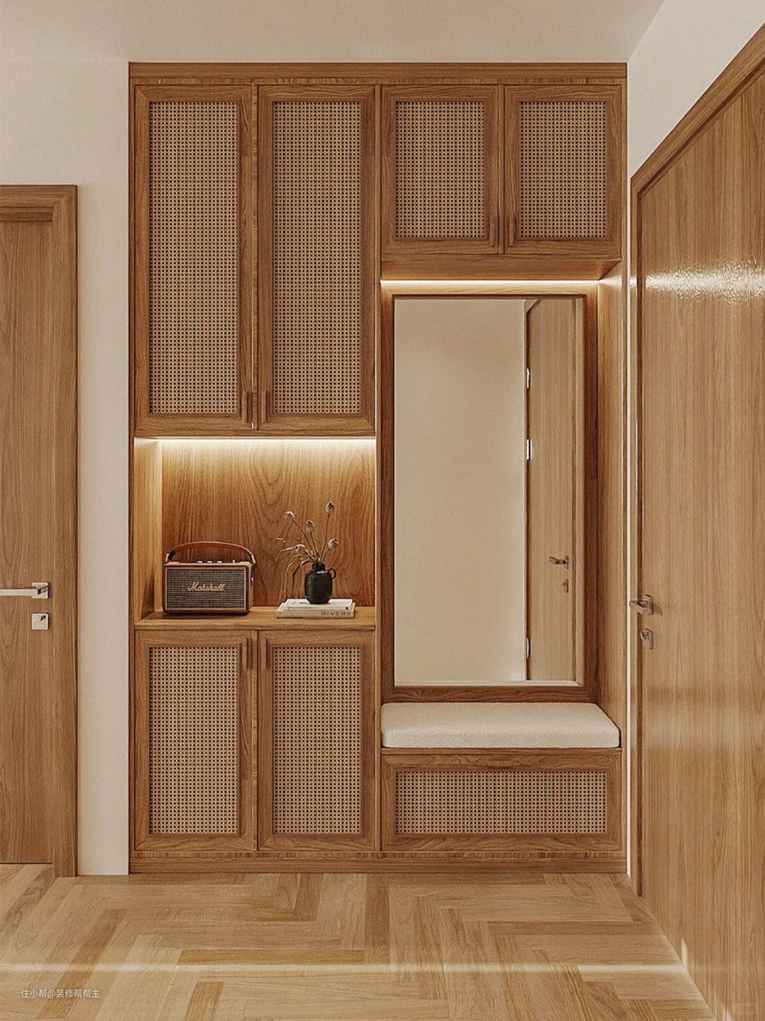 去同事家做客,一进门就被惊艳了,玄关柜这样装不仅实用还漂亮