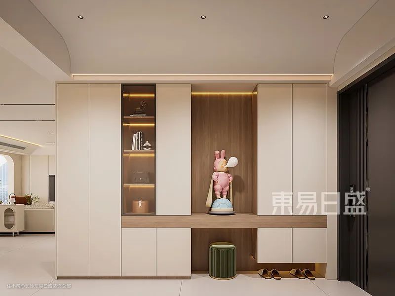 入户设计简约而不失品味,充分展现了实用与美观的完美结合。精致的鞋柜收纳设计,既满足了日常需求,又提升了空间的整洁度。独特的风衣格设计,为业主提供了贴心的储物空间,让归家更添一份从容与优雅。分区设计巧妙地将收纳与展示融为一体,不仅提升了空间的实用性,更在细节中流露出不俗的审美品味。这样的入户设计,既方便实用,又美观大方,让每一次回家都成为一次美好的体验。