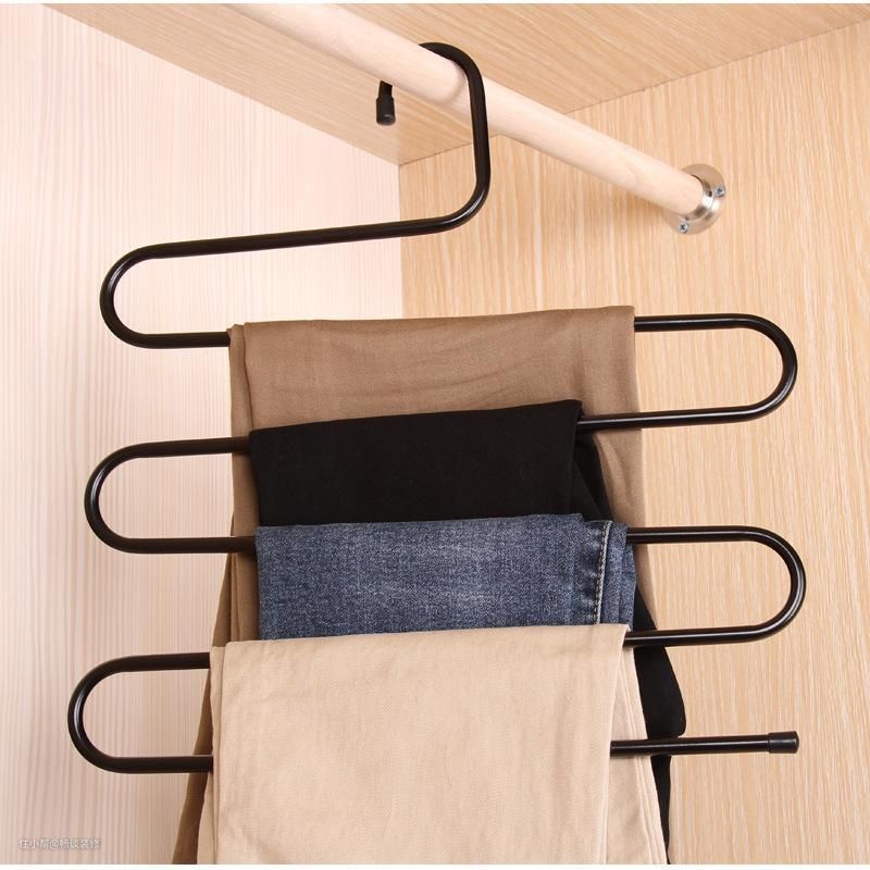 因此,商家就推出了多功能裤架,号称只占用一条裤子的空间却能收纳多条裤子,解决了衣柜内部收纳空间不足的问题。