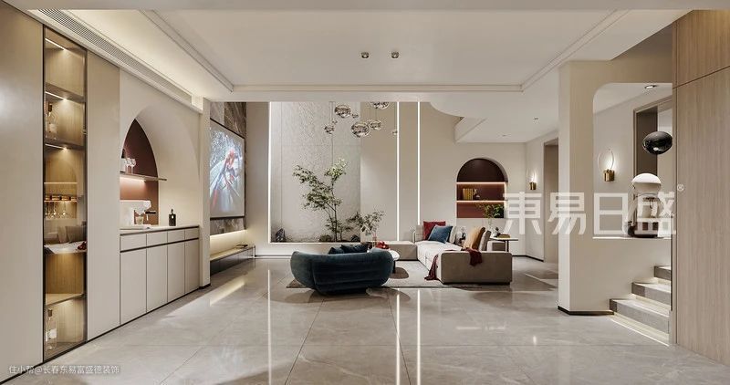 如简化吊顶内嵌灯带或筒灯,角落增加落地灯、壁灯,柜内设置灯带、射灯等辅助光源,使照明方式更加精准、具体。