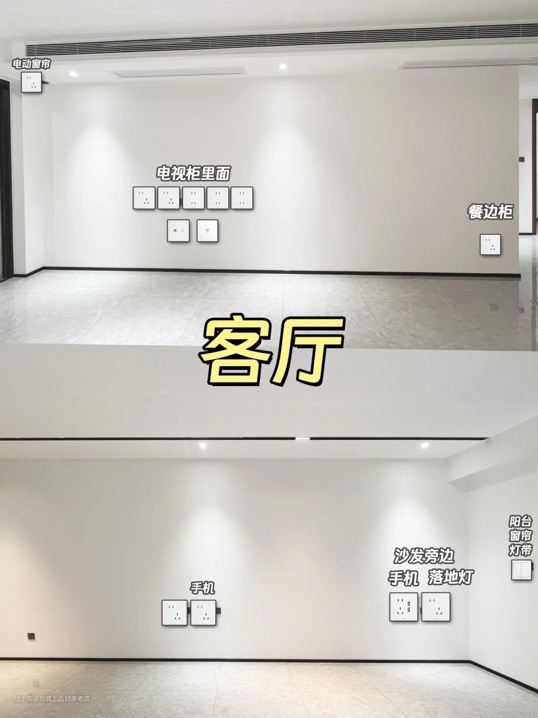 墙面插座间距:在客厅和卧室的每个墙面上,两个插座之间的距离不应超过2.5米,确保电器使用的便捷性。墙角0.6米范围内至少应安装一个备用插座,以应对未来可能增加的电器需求。