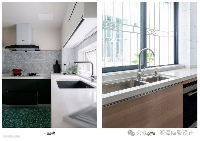 小双槽:洗菜和刷碗能够分隔开,使清洁更加彻底卫生;然而,洗大锅具可能不太方便。