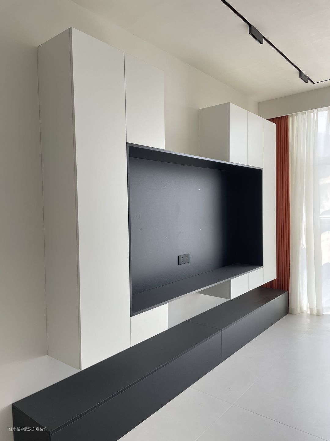 木饰面板可以通过全屋定制来完成,一般是工厂定制好尺寸,现场墙面打底,直接安装即可。