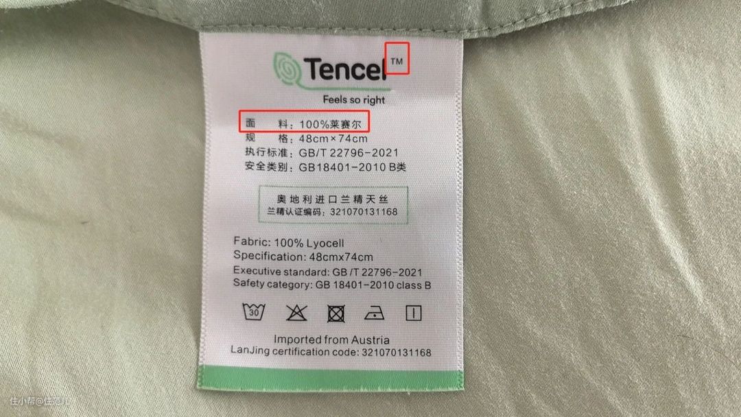 分辨也比较简单,既然是品牌,就有品牌标识,认准右上角TM两个字母,以及100%莱赛尔纤维即可。