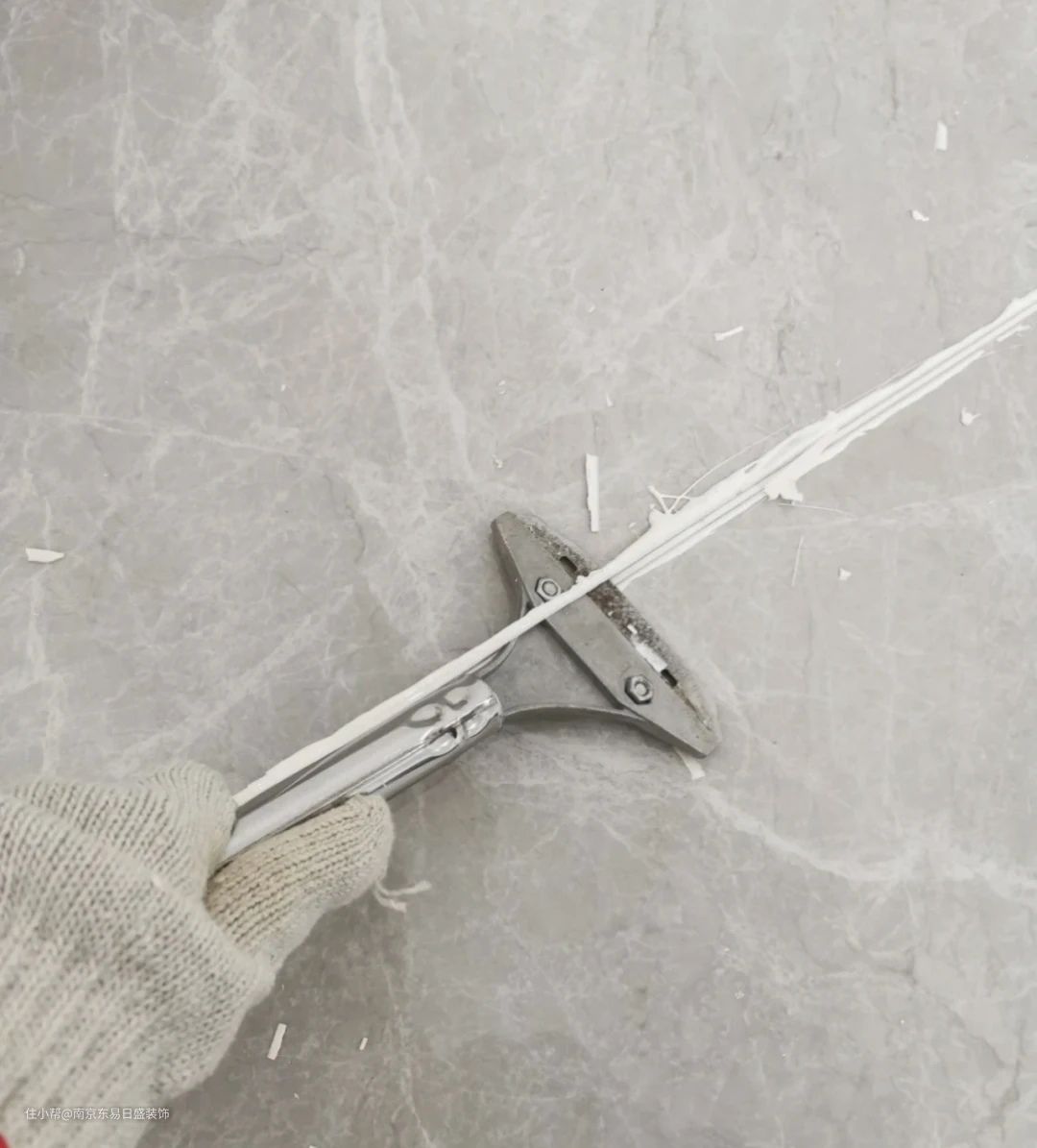 如果是釉面砖、抛光砖等表面光滑的瓷砖,等美缝剂干燥后,可用刀锋紧贴瓷砖表面,沿着美缝剂的方向轻轻铲除即可。但如果美缝剂干燥很久,用铲刀很容易破坏瓷砖表面。
