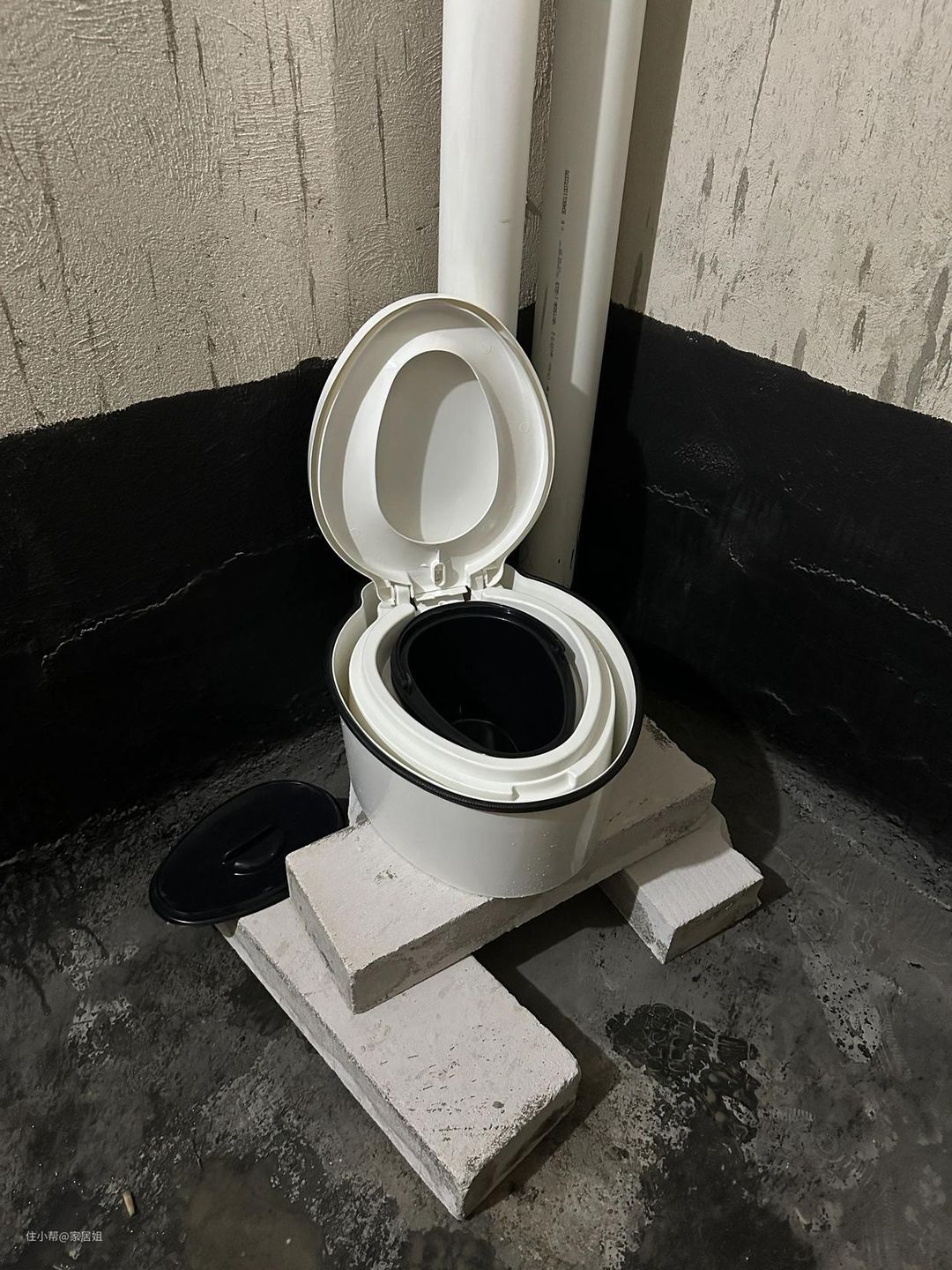 卫生间也配了马桶,下面连接排污管,是可以手动冲水的。