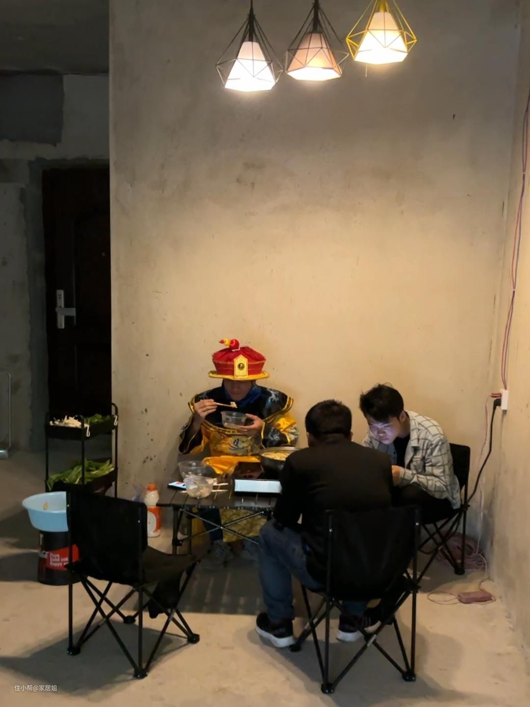 天冷了,还可以叫上几个朋友一起来涮火锅,有网友说,毛坯房入住,也适合我这种穷人,以后要是买房没钱装修,也要学他这样做,能满足三餐四季就行。