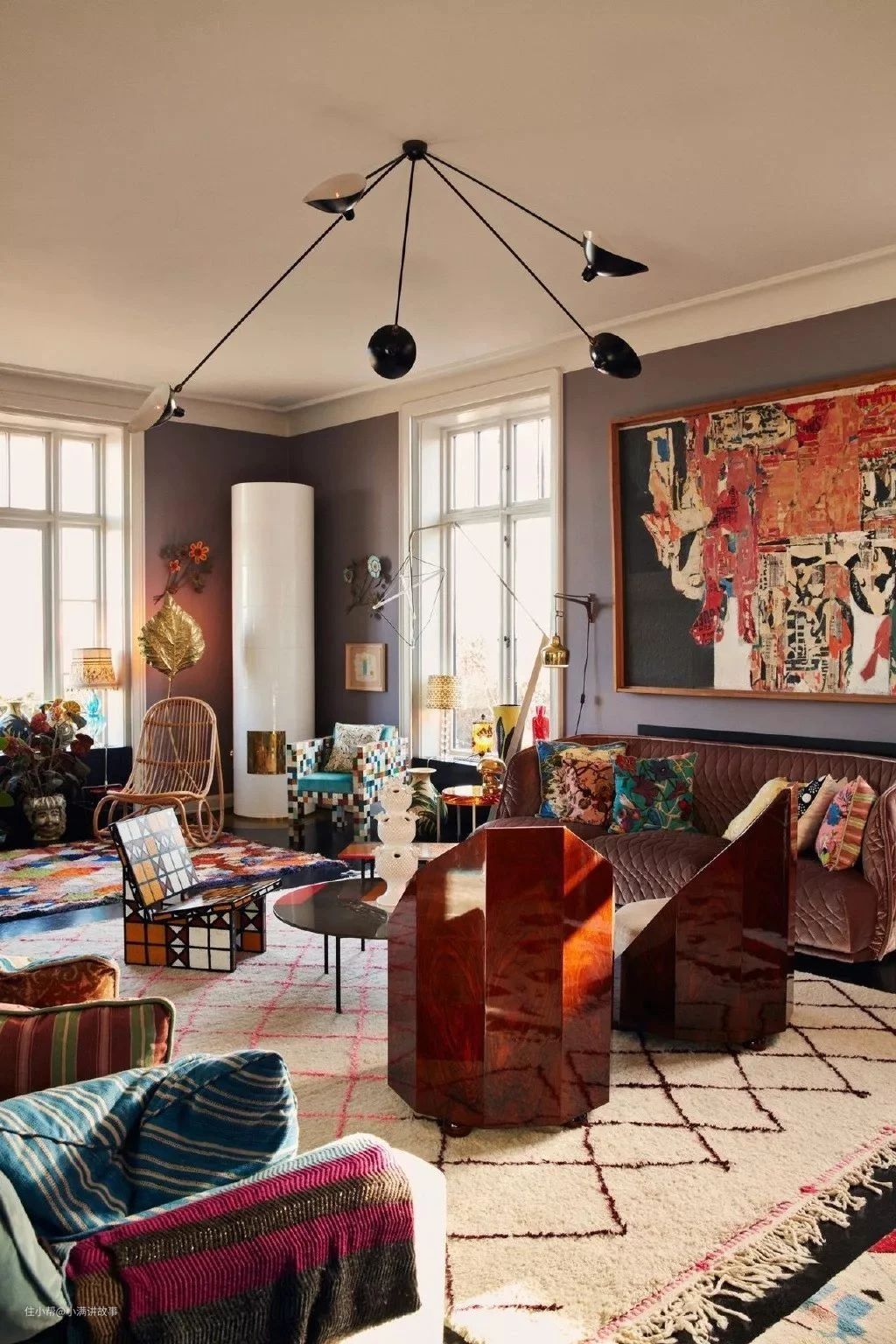 运用华丽的图案和纹理:选择带有图案和纹理的家具、地毯、织物等物品,以增添空间的层次感和视觉冲击力。这些图案和纹理可以来自不同的时期和风格,混搭在一起可以创造出独特的视觉效果。