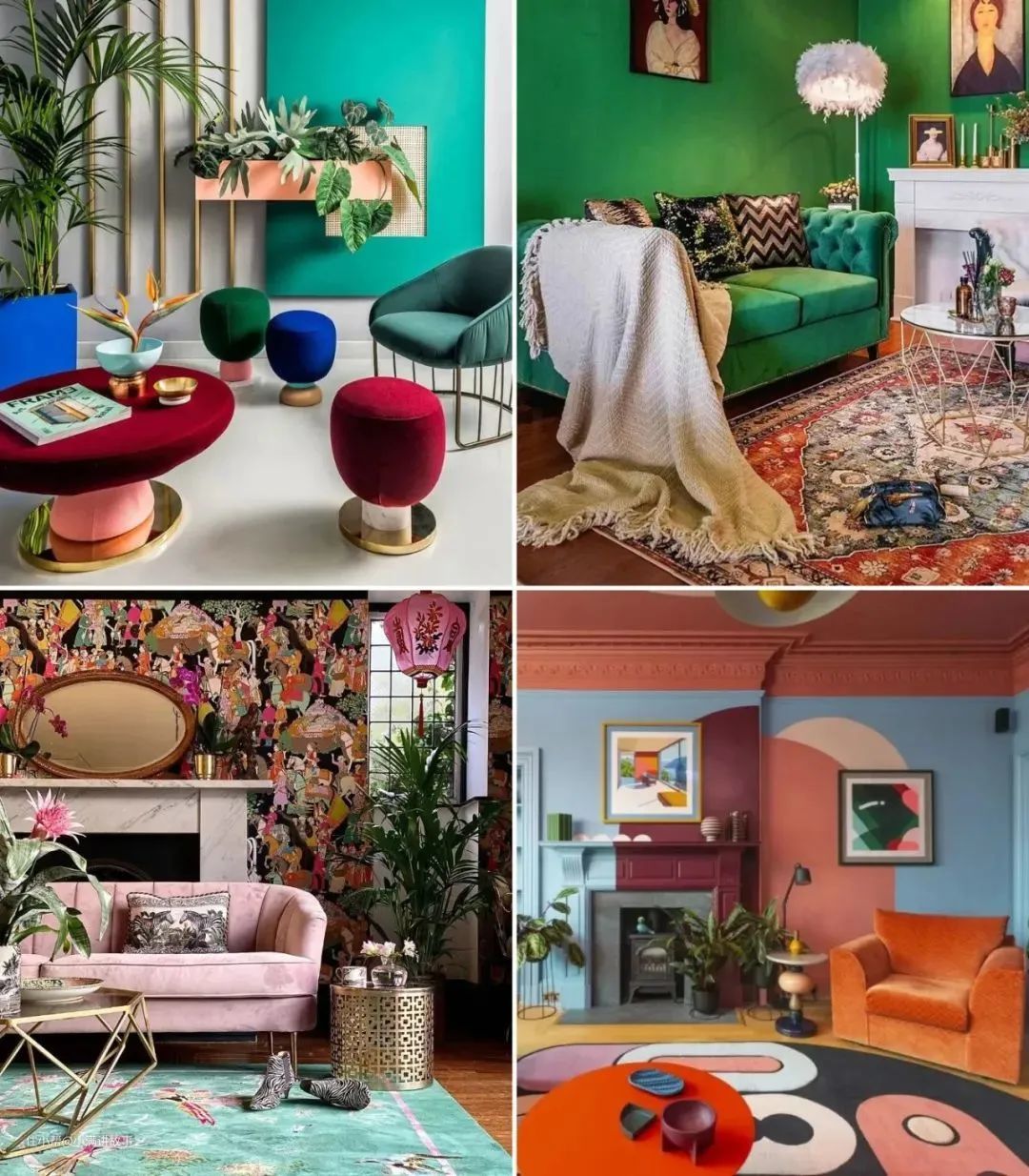 大胆运用色彩:选择鲜艳、明亮、饱和的色调,并尝试进行碰撞性搭配。这种色彩运用可以体现在墙面、家具、装饰品等多个方面。例如,你可以选择一面墙使用大胆的颜色,或者选择具有鲜艳色彩的家具和装饰品。